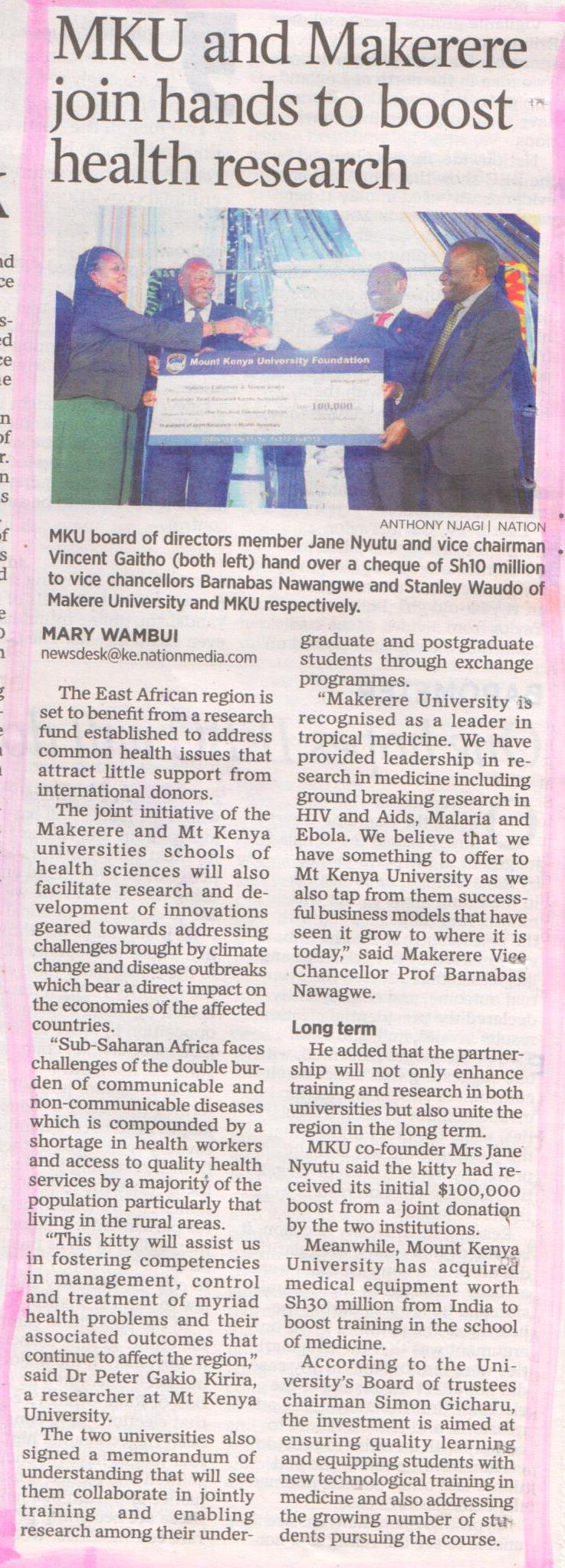 Publication: MKU AND Makerere join hands to boost health research