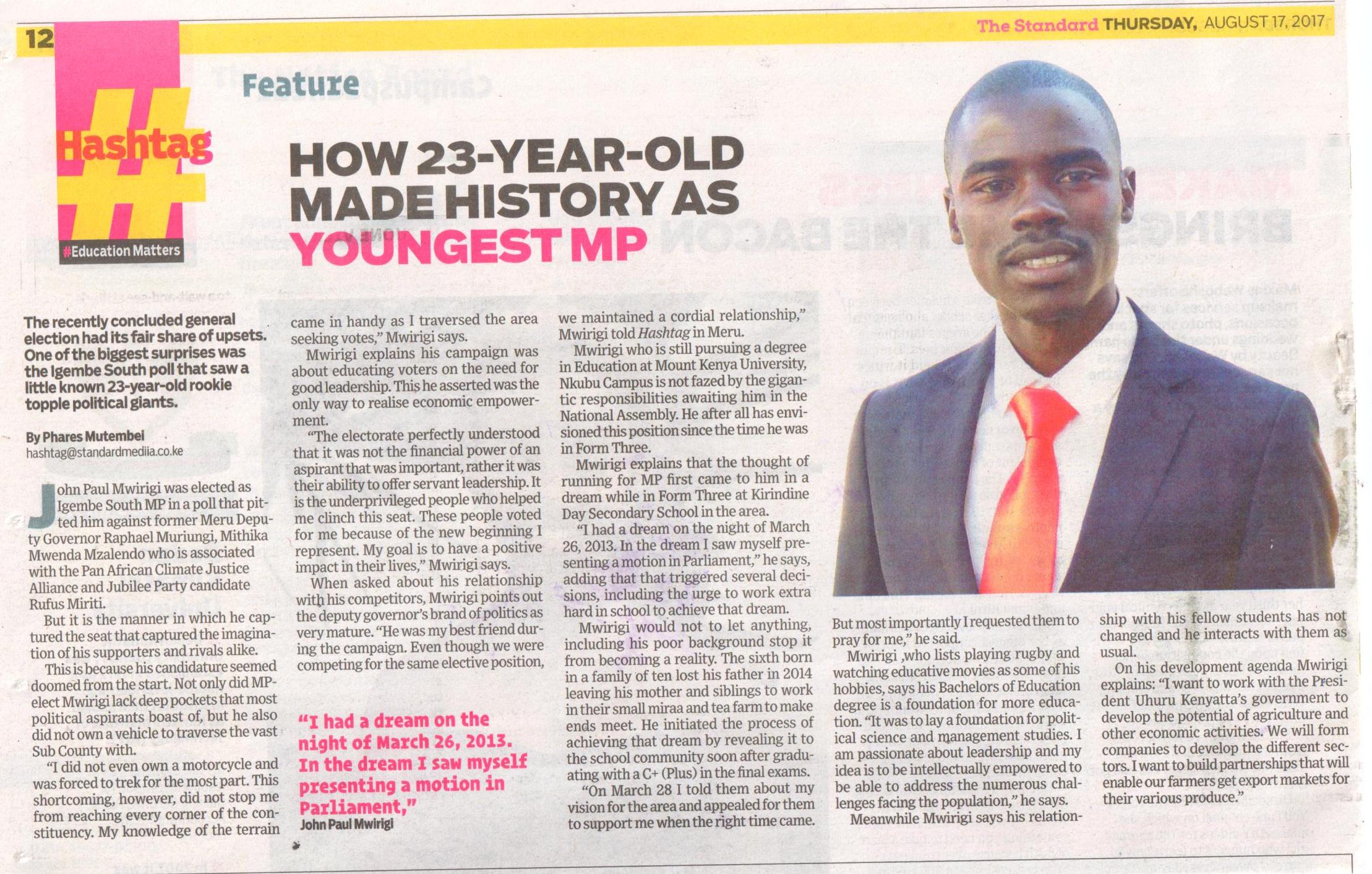 Mutembei, P. (2017). How 23-year-old made history as youngest MP.